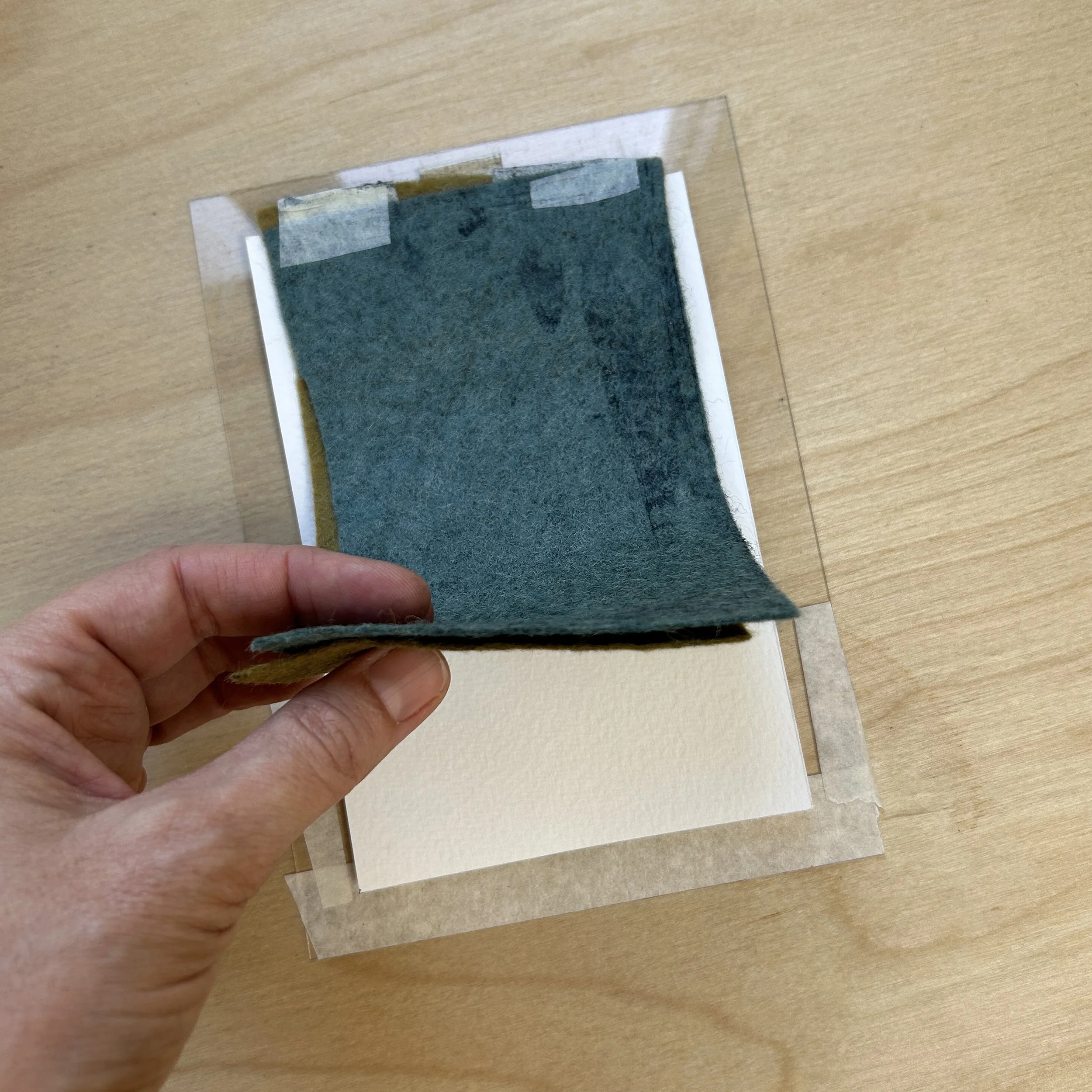 Place the paper on top of the inked up plate, and use felt to cushion it as it passes through the press
